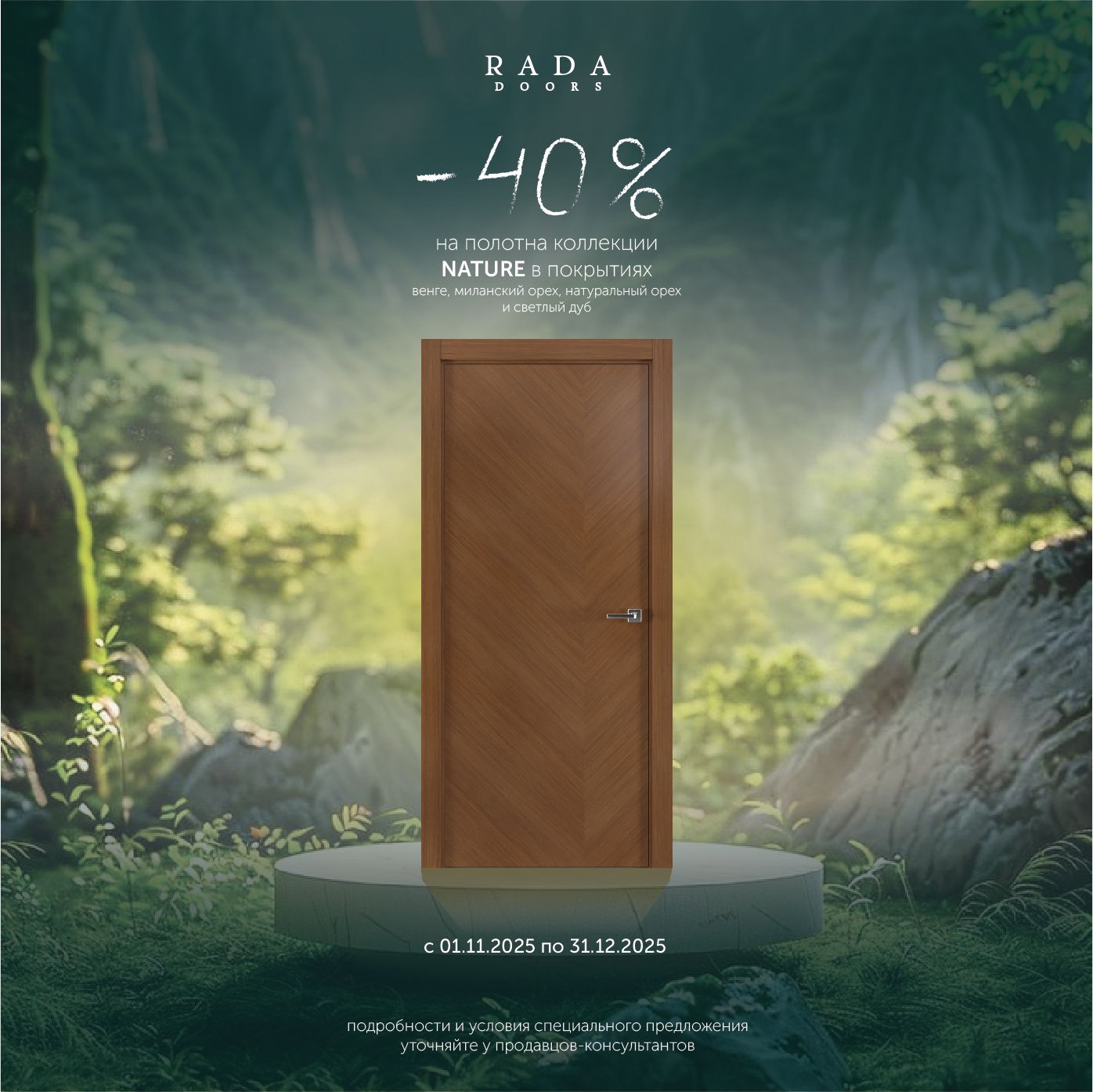 NATURE по специальной цене и преобразить ваш интерьер. Предложение действует на двери в покрытиях венге, миланский орех, орех натуральный, светлый дуб.