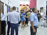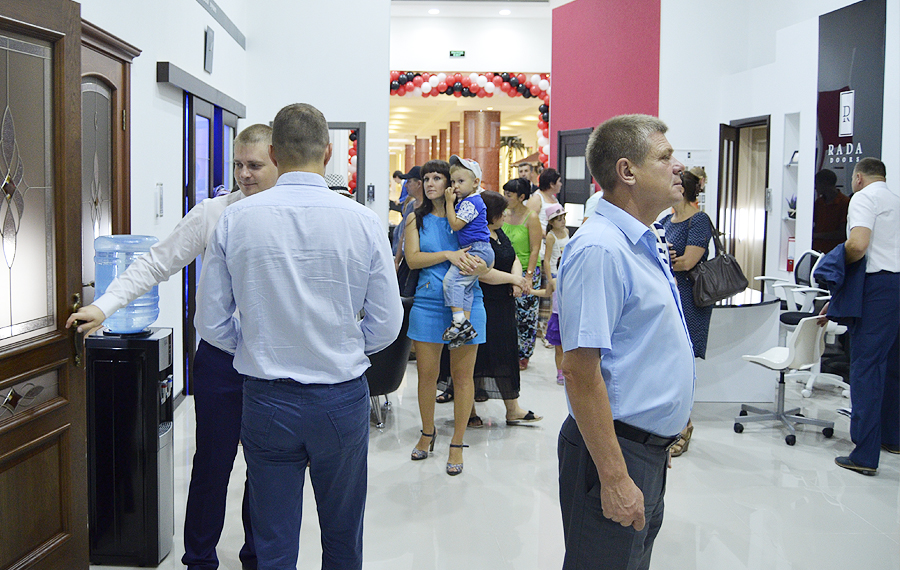 Первые клиенты салона приняли участие в торжественной церемонии открытия, после чего с удовольствием ознакомились с богатой выставочной экспозицией. Различные стилевые направления, многообразие цветов, безупречное качество исполнения - далеко не все достоинства дверей RADA, уже отмеченные жителями города. Новое оформление популярных моделей, включающее варианты покрытия, остекление, погонаж, системы открывания, - те изюминки, которые им еще предстоит оценить.