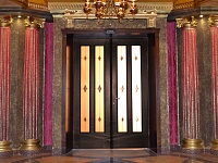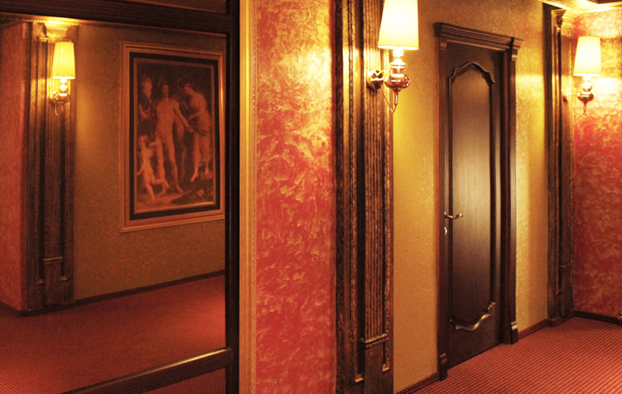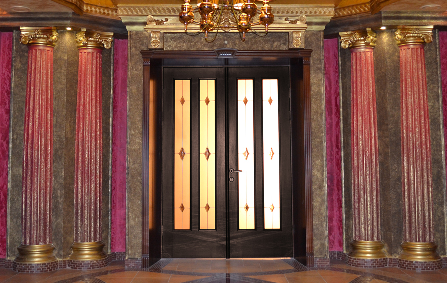 Заказчик остановил свой выбор на моделях ВЕРОНА и МОНРЕАЛЬ с покрытием из натурального шпона цвета «табако» и «белое золото». Двери RADA не просто вписались в дворцовый интерьер в духе 19 века, они предстали знаковым элементом той эпохи. Фигурный багет, резные пилястры, золотые переплеты стекол отлично поддержали роскошь и блеск классического стиля, на все 100% воплотив замысел дизайнера.
