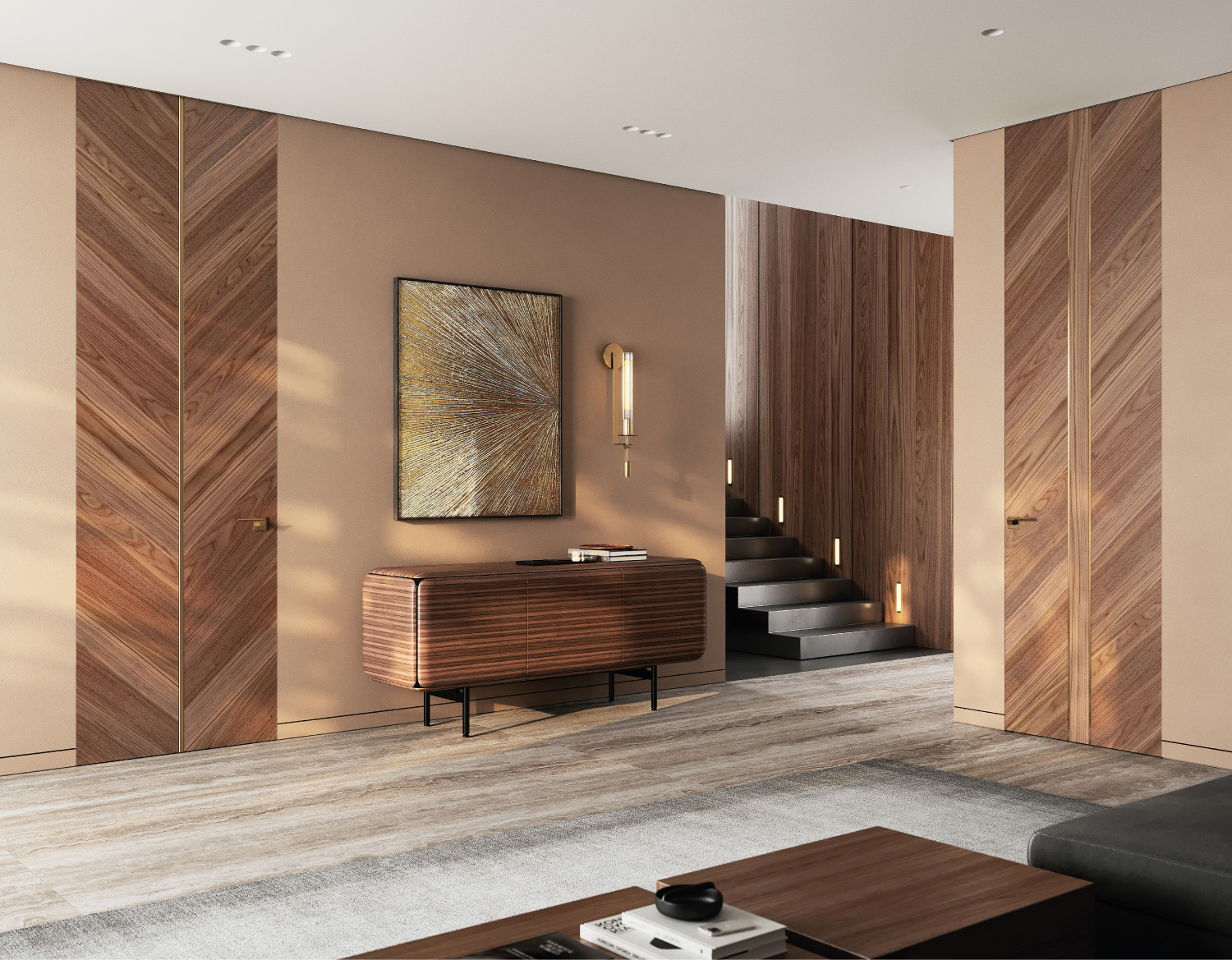 Особенность коллекции – технология сшивки шпона MixMatch. В данной технике неповторимый рисунок дверного полотна создается за счет разного направления и различной текстуры шпона, который сшивается “вручную”. Такой способ позволяет сделать каждую дверь уникальной и неповторимой. Это уже не просто часть интерьера, а дизайнерский объект.