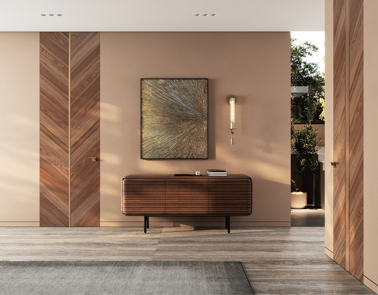 В серии AURUM предусмотрены металлические вставки, представленные в матовом и глянцевом исполнении. Полотна со вставками делают интерьер еще более изысканным. Матовые вставки добавят в атмосферу уюта и спокойствия, а глянцевые создадут игру света, делая пространство более динамичным.