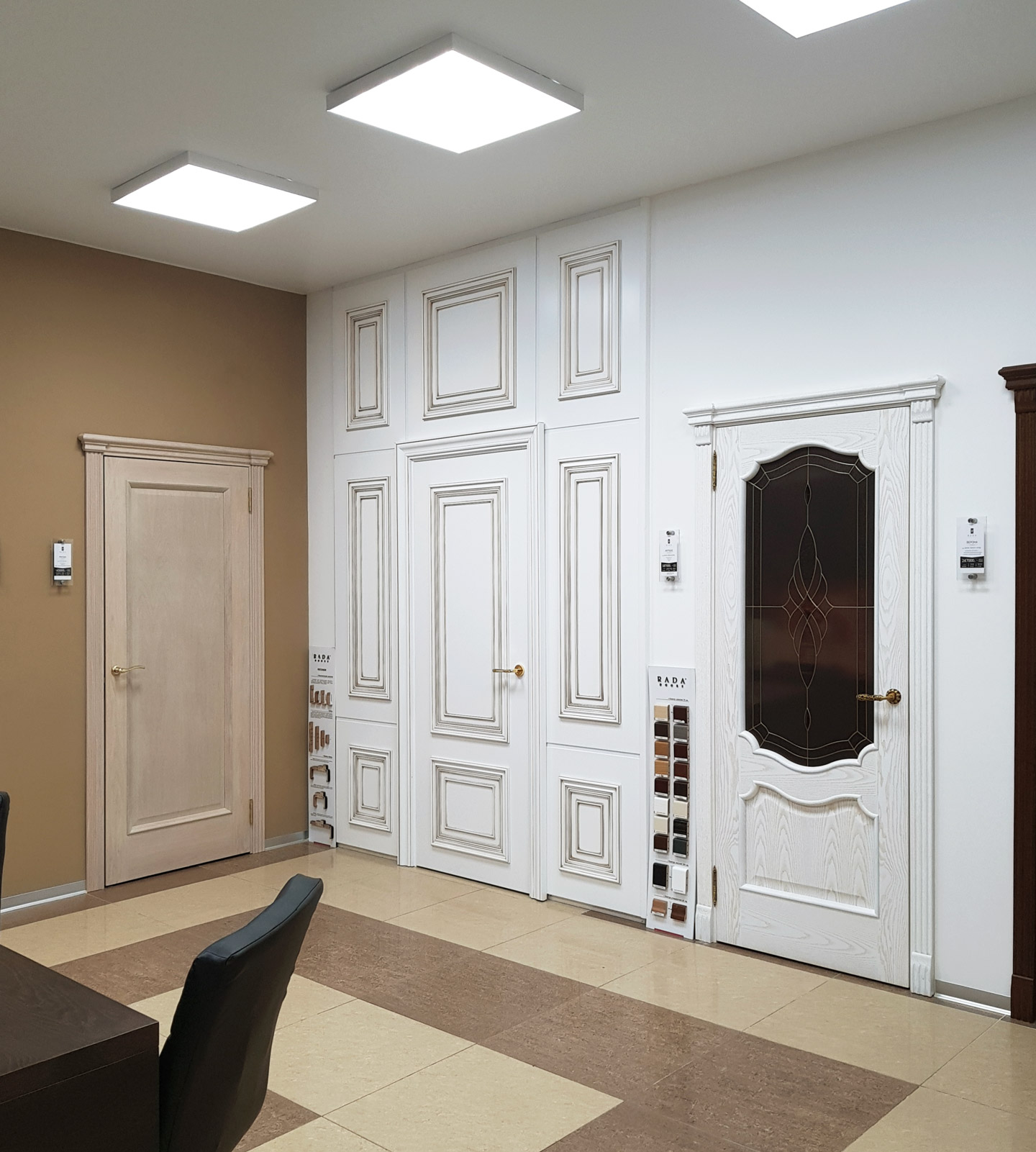 На выставке представлены модели межкомнатных дверей как в современных, так и в классическом стилях, а также раздвижные перегородки и стеновые панели. Кроме того, на ней вы можете вживую посмотреть и оценить последние новинки фабрики – коллекция дверей ANTIQUE NEW, модель Милан, а также двери в новых вариантах покрытий – капучино, меланж грей, дуб горный и др.