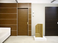 Особенностью салона является органичное сочетание классической и современной зоны. В каждой из зон представлены не только популярные исполнения классических и современных дверей, но и новинки. Среди них: классическая модель Милан, обновленная коллекция Antique и др. Также на выставке представлены двери в новых вариантах покрытий: шоколад, карамелло, меланж грей, орех натуральный, капучино и др.