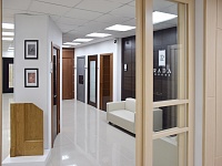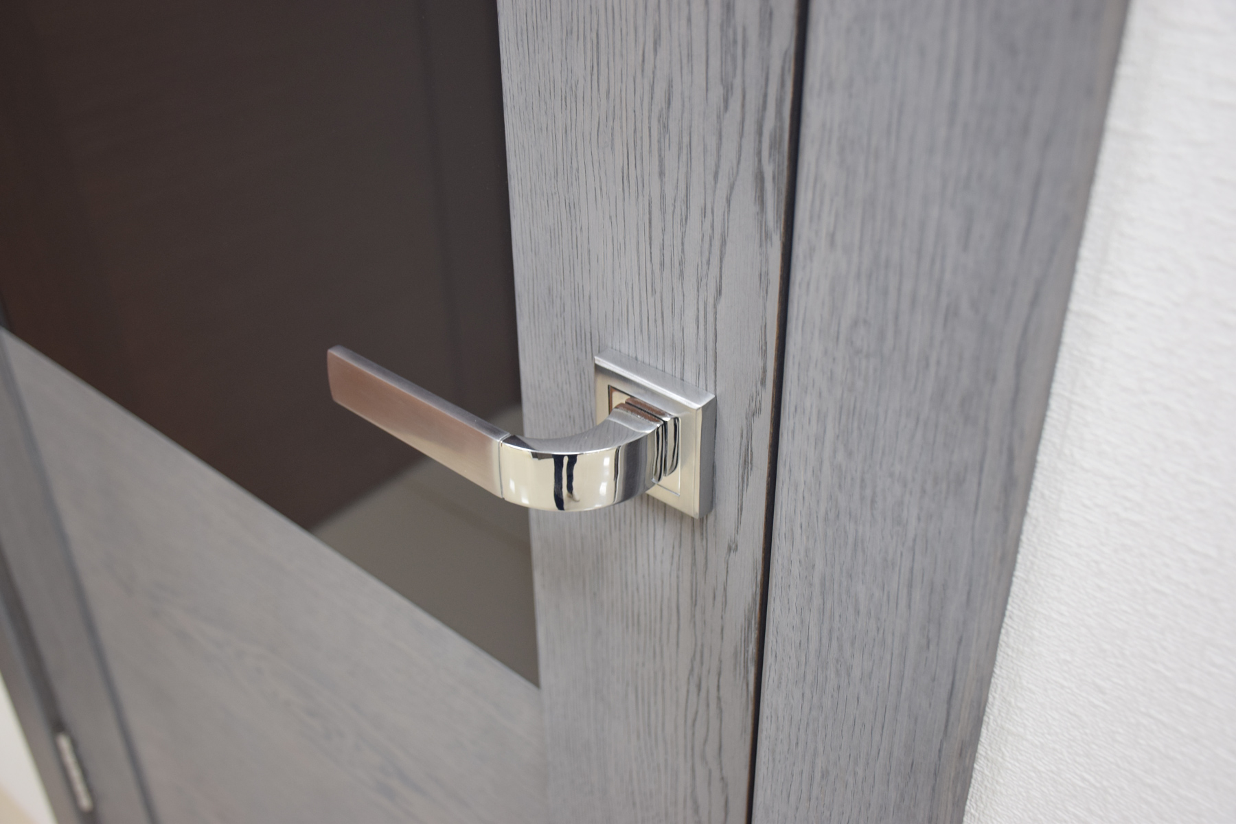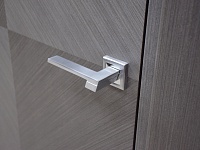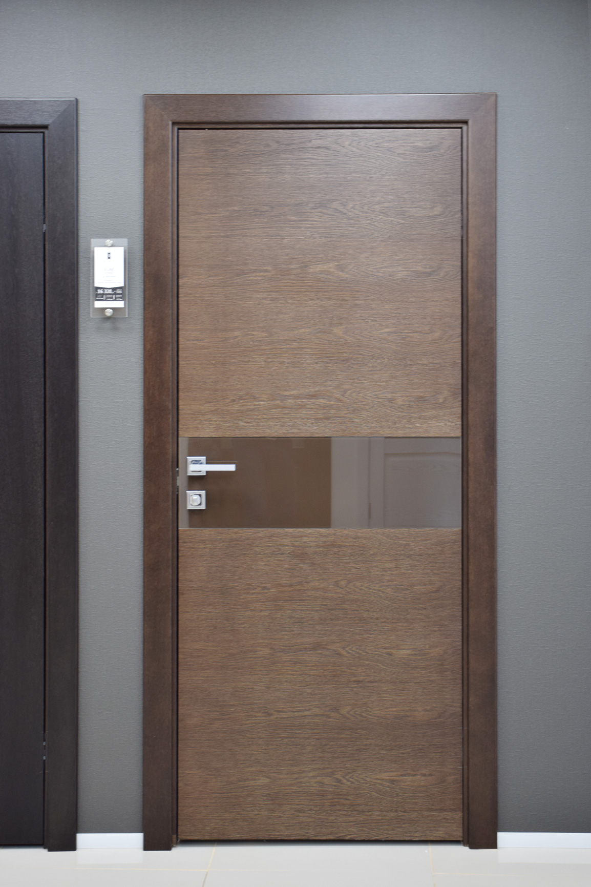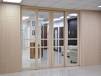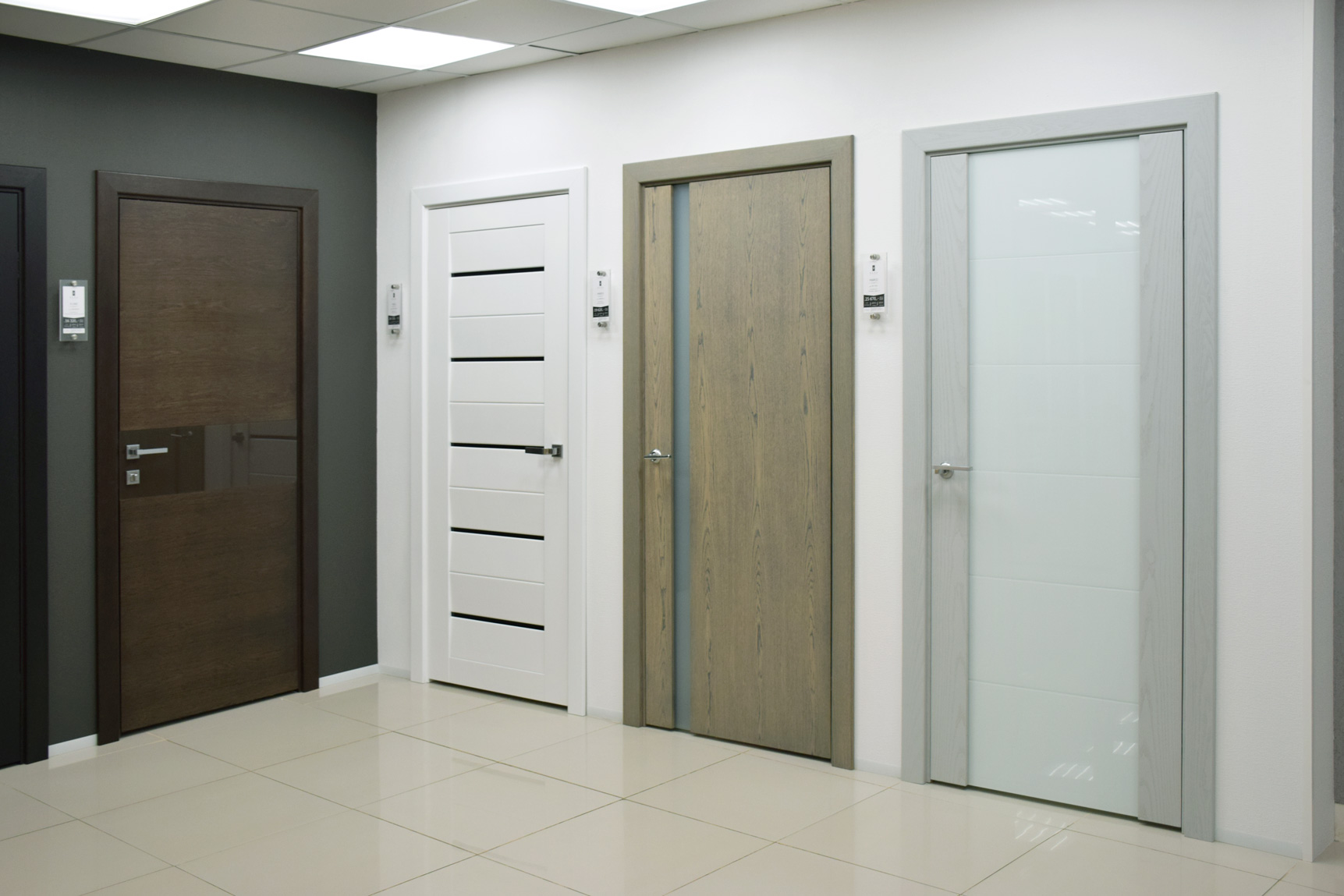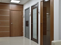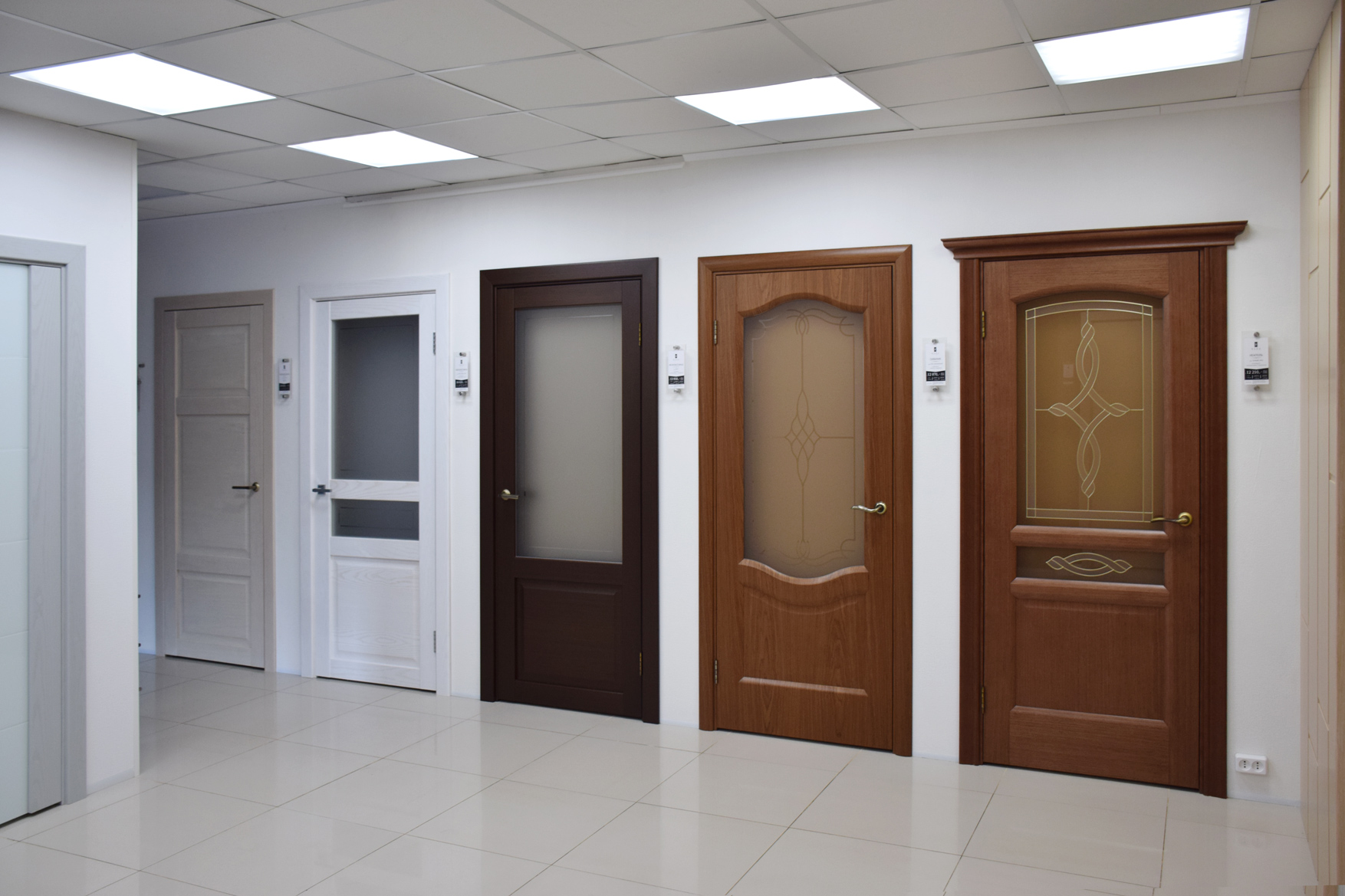 Украшение выставки – двери в новых вариантах покрытий: капучино, меланж грей и др. Дополнительно в салоне можно посмотреть варианты раздвижных перегородок, рото-двери и стеновых панелей.