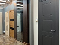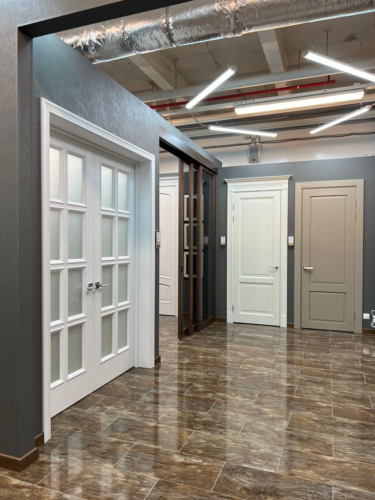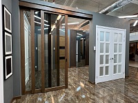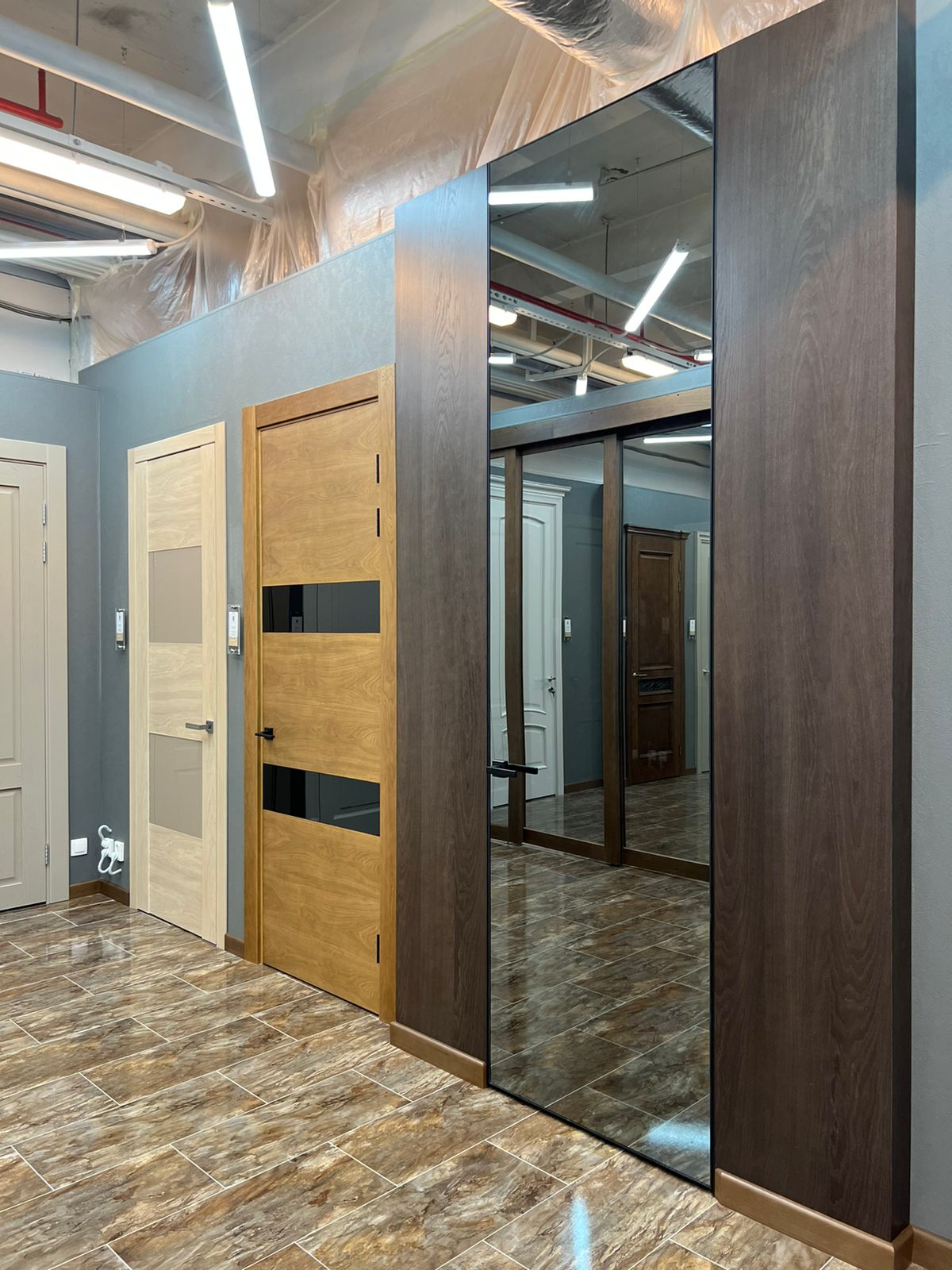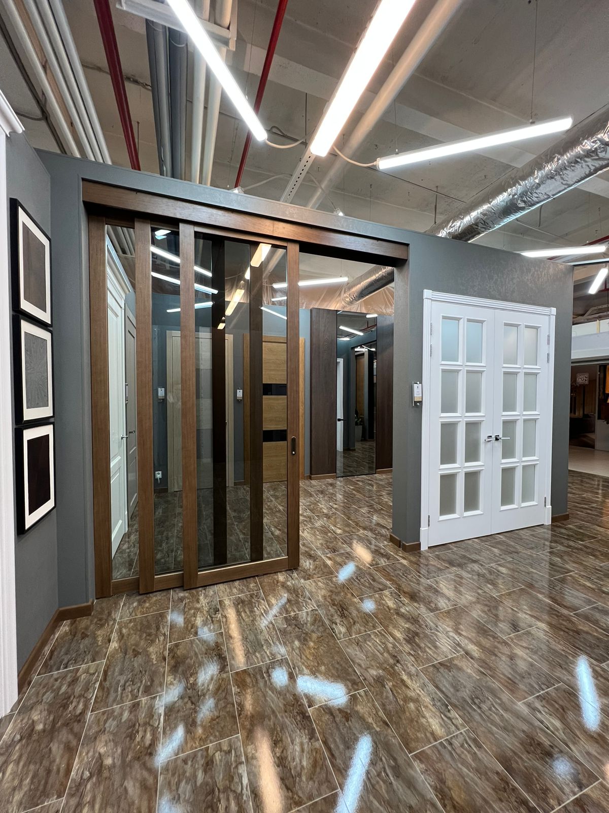 Также на выставке в салоне Вы сможете подобрать и другие решения для вашего интерьера. Например, раздвижные перегородки, двери с обратным открыванием, реечные перегородки, а также стильные высокие двери в шпоне или с зеркалом.