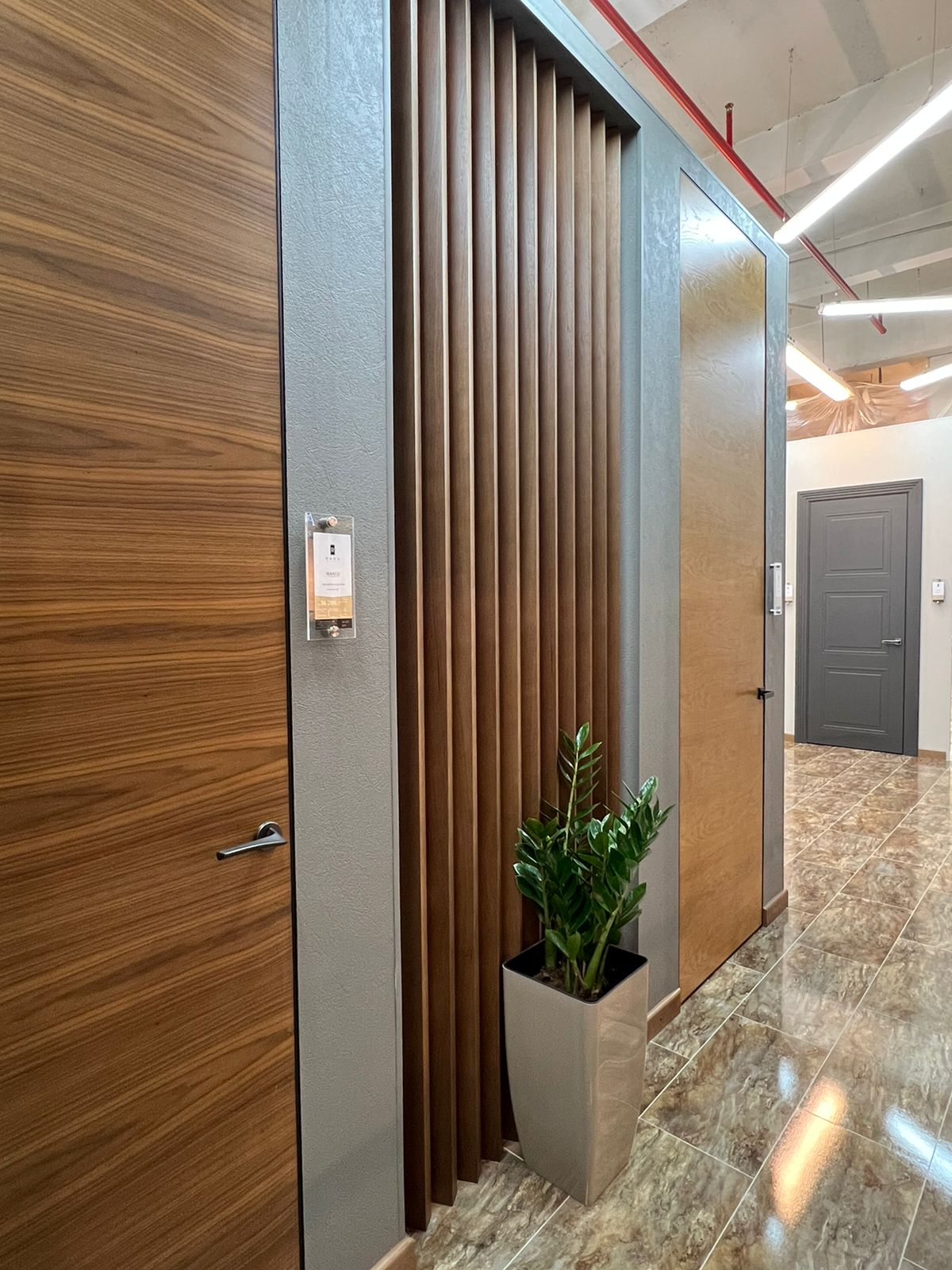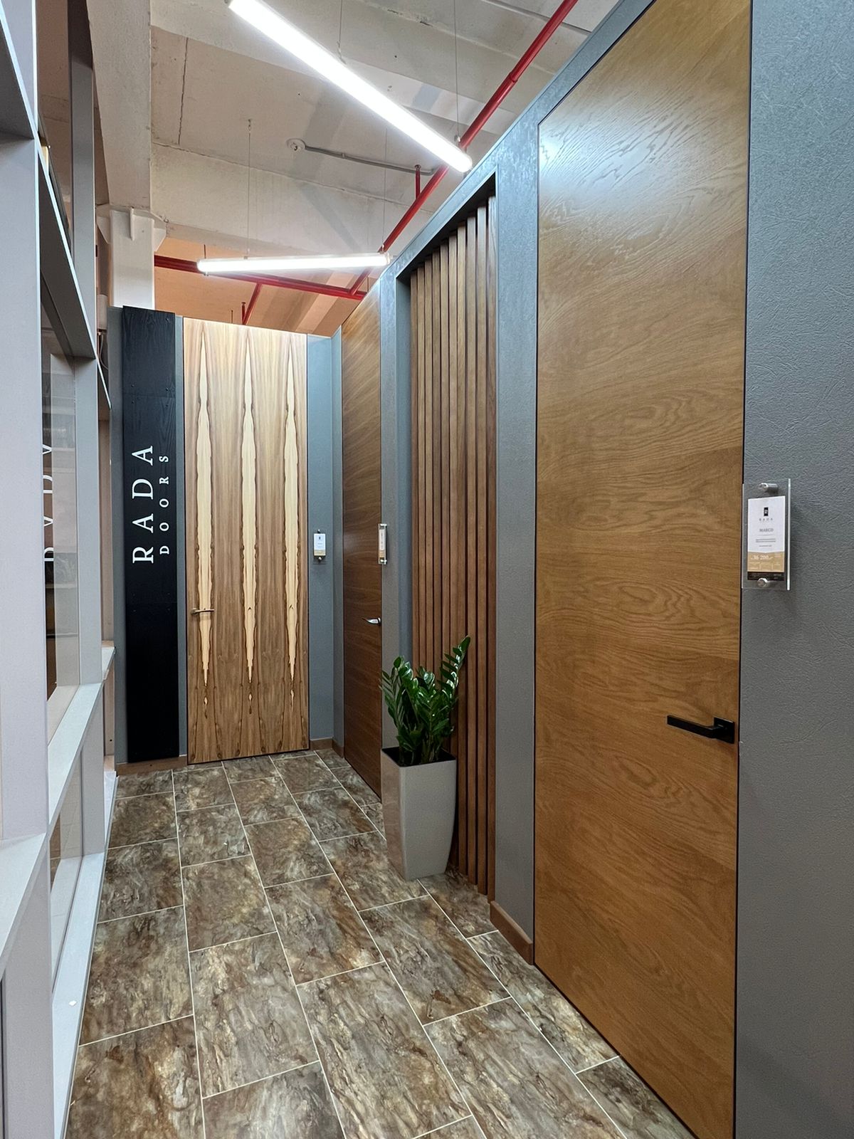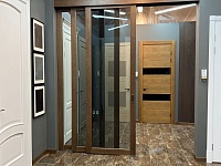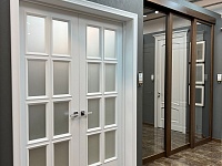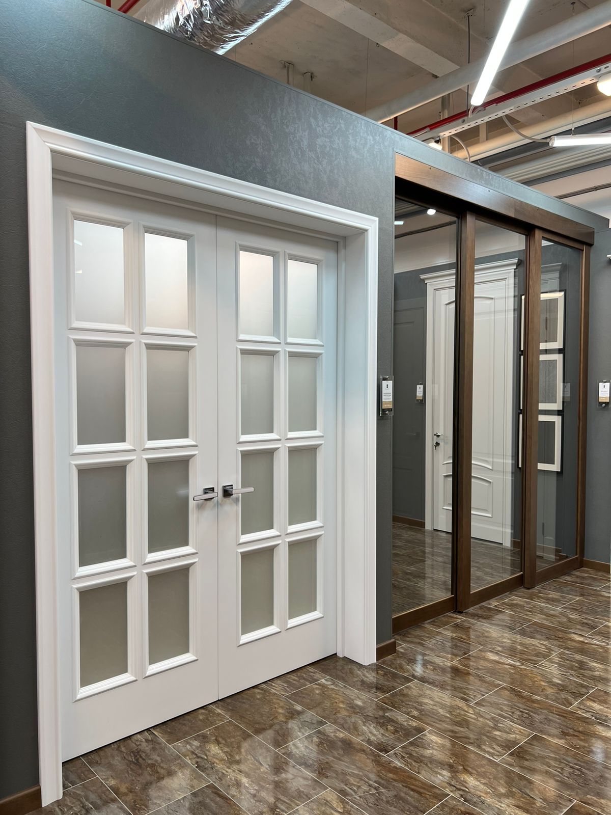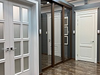 Также на выставке в салоне Вы сможете подобрать и другие решения для вашего интерьера. Например, раздвижные перегородки, двери с обратным открыванием, реечные перегородки, а также стильные высокие двери в шпоне или с зеркалом.