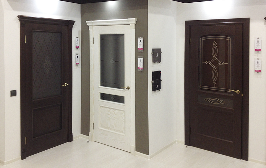 На площади более 60 кв. м представлен широкий выбор межкомнатных дверей, выполненных в различных стилевых направлениях от классики до хай-тека.