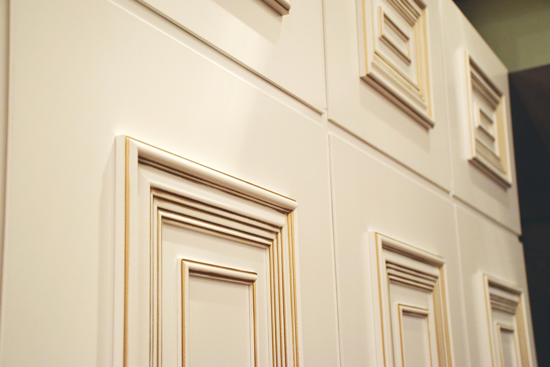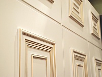 Коллекция дополнена сложным классическим профилем с патиной, а также идентичными стеновыми панелями.