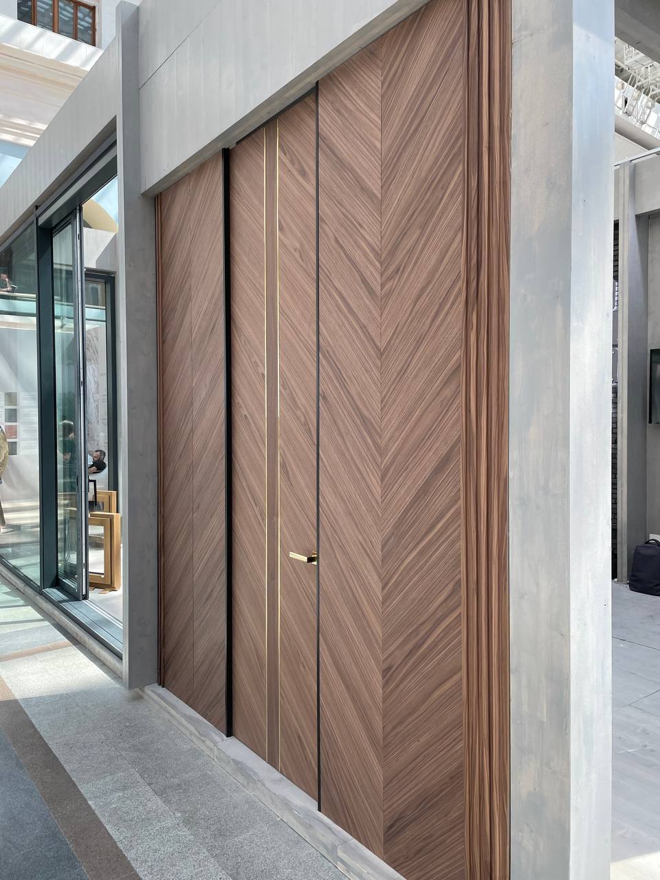 На выставке была представлена дверь AURUM в натуральном шпоне Американского ореха.