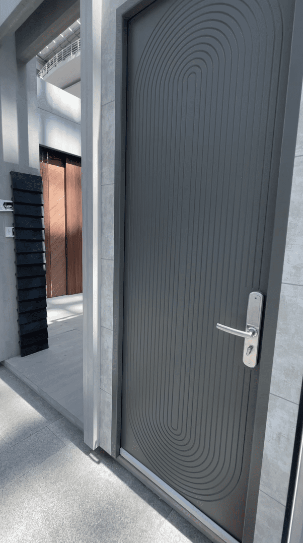 При установке двери мы использовали скрытый короб из алюминия, который обеспечивает прочность и надежность конструкции.