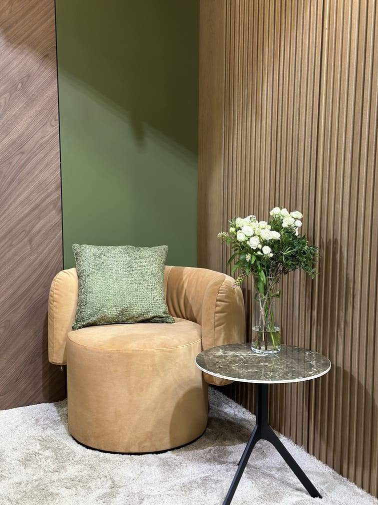 На стенде также представлена новинки нашей мягкой мебели: диван, кресло Космо и столик Коузи. Эти предметы мебели созданы для тех, кто ценит комфорт, стиль и эргономичность, дополняя современный интерьер своей элегантностью и функциональностью.