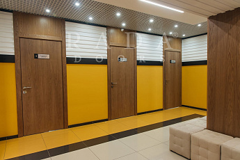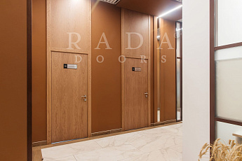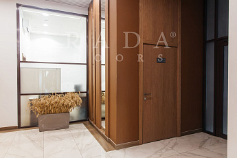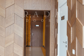 2. В коридорах на первом и втором этажах были установлены дверные полотна «Марко» с фальш фрамугой, которая визуально увеличивает высоту потолка. Врезка и монтаж фурнитуры производилась полностью на производстве Rada Doors, что позволило сократить время монтажа конструкции.