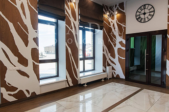 1. В вестибюле офиса мы установили стеновые панели Volume толщиной 16 мм из натурального шпона. Панели получились как колонны без единого шва и были изготовлены под точные размеры участков стены.