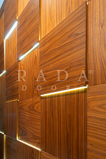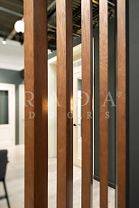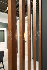 Дополняют коллекции дверей уникальные дизайнерские решения – раздвижные перегородки, стеновые панели и декоративный брус, шпонированный с 3-х и с 4-х сторон.