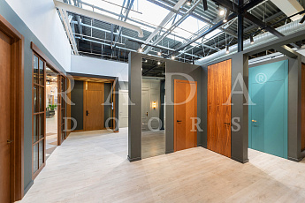 Также на выставке представлены варианты дверей с фальшфрамугой, которая позволяет зрительно увеличить высоту потолка.