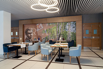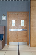 3. На первом этаже гостиничного комплекса расположен ресторан «Есенин». В нем нами были установлены двустворчатые двери с иллюминатором и отбойными пластинами, защищающие дверь от ударов, царапин и грязи.