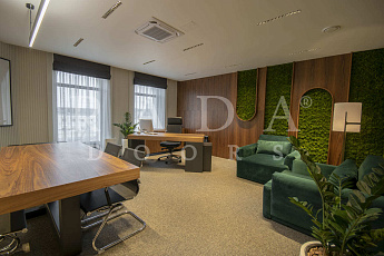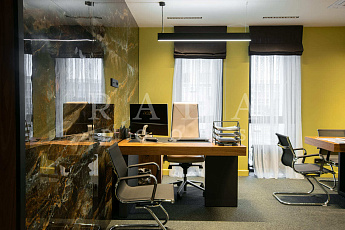 Мы разработали комплексное решение для этого офиса, включающее в себя двери, нестандартные стеновые панели, стол для переговоров, а также корпусную и мягкую мебель.