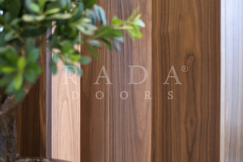 Особенно красиво выглядит шпон американского ореха в вертикальной сшивке - темная сердцевина гармонично сочетается с более светлыми краями, создавая эффект ярко выраженной текстуры и переходов цветов.
