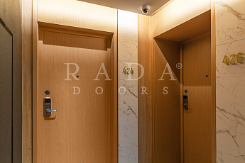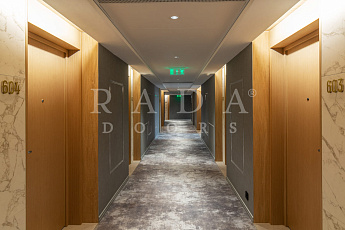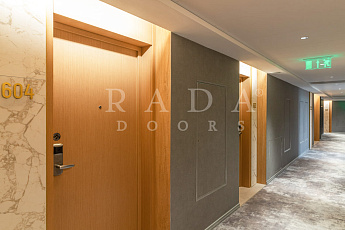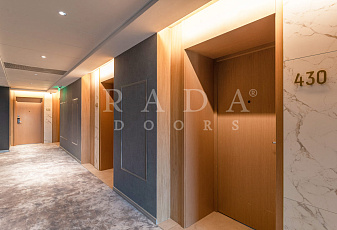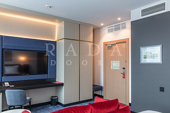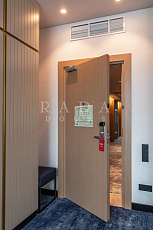 В рамках этого проекта были применены новые для нас подходы. Одним из таких подходов стало изготовление двери с отделкой из керамической плитки с двух сторон. Это не только обеспечило высокую степень звукоизоляции, но и придало дверям эстетичный внешний вид, который соответствует дизайну гостиницы.