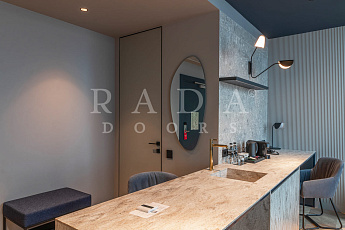 В отеле 50|60 также были установлены скрытые двери с индивидуальным выкрасом, выполненные по заданию заказчика, для обеспечения максимальной эстетичности и комфорта гостей.