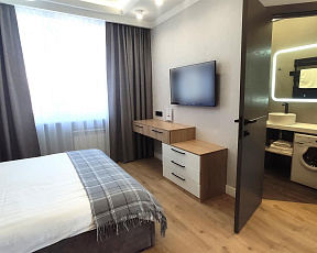 Кроме того, мы произвели и установили двери с индивидуальным цветовым решением, специально подобранным для данной гостиницы. Это позволило интегрировать двери в интерьер гармонично и создать уникальный стиль для отеля.